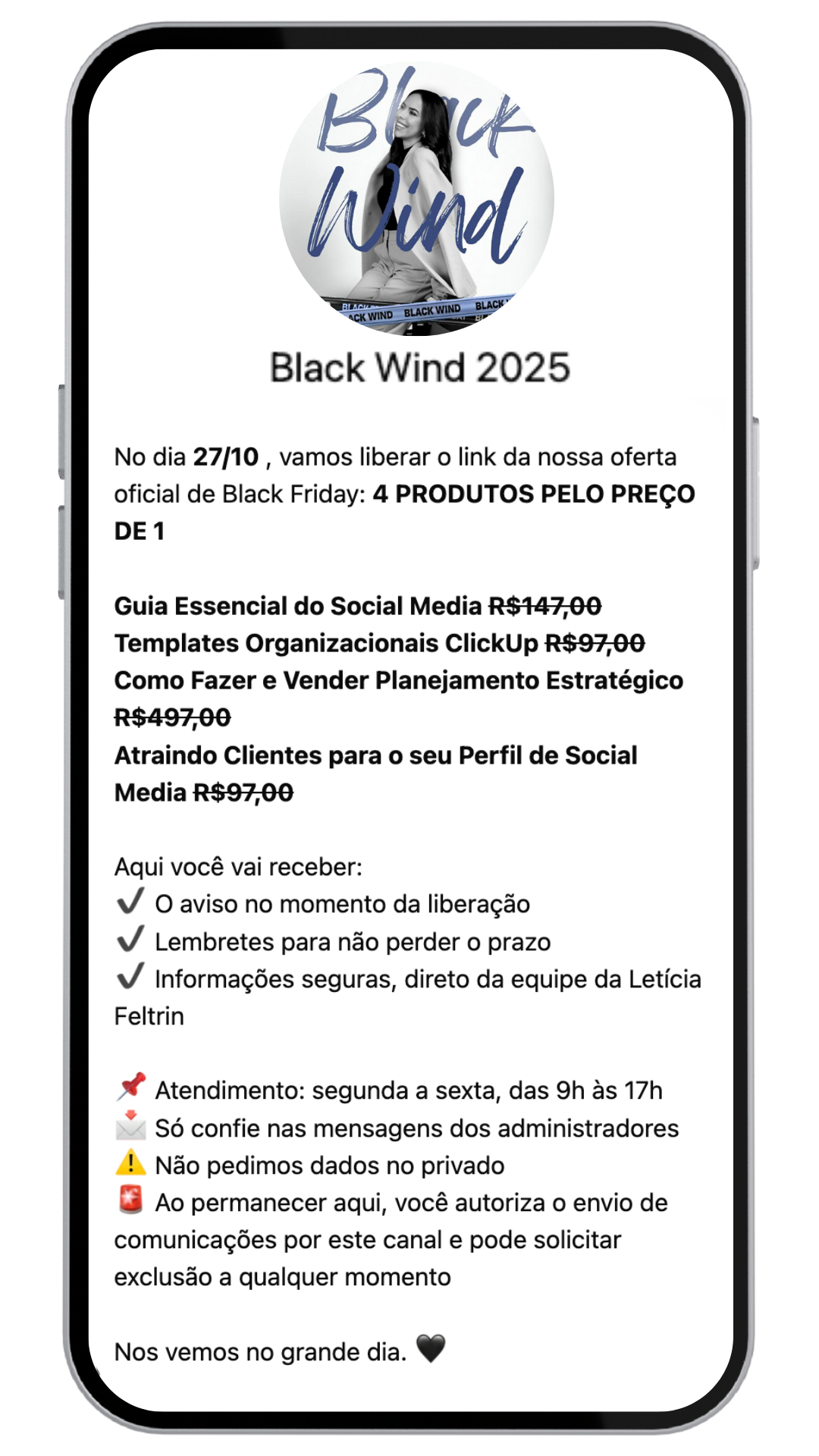Após a inscrição, você será direcionada para uma página de confirmação com o link para entrar no grupo VIP do WhatsApp.